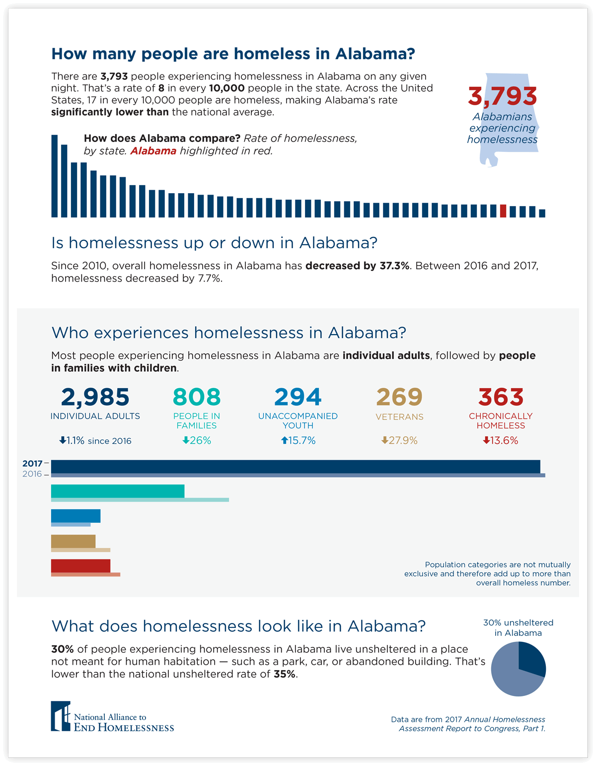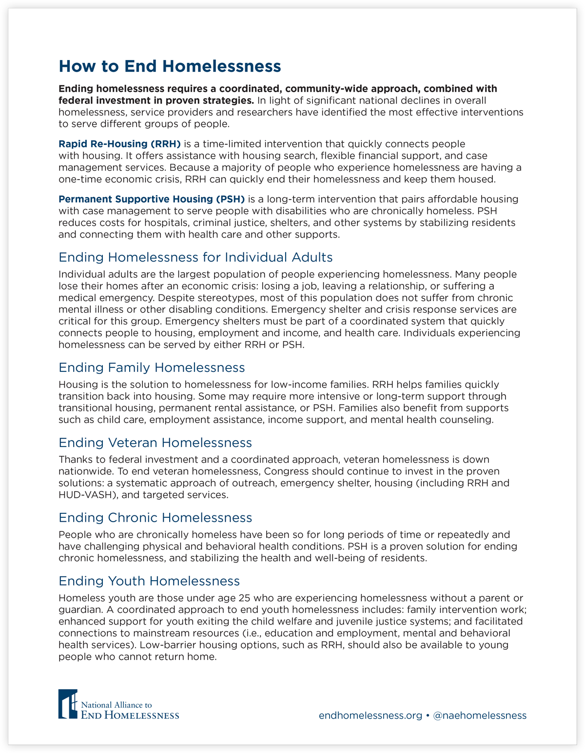 These custom 50-state factsheets were produced for the National Alliance to End Homelessness's 2018 Capitol Hill Day. Using standardized data from HUD and a font called Chartwell, we automated the creation of a data visualization factsheet for each state (plus D.C.). The factsheets were hand delivered to members of the House and Senate and their staff.
