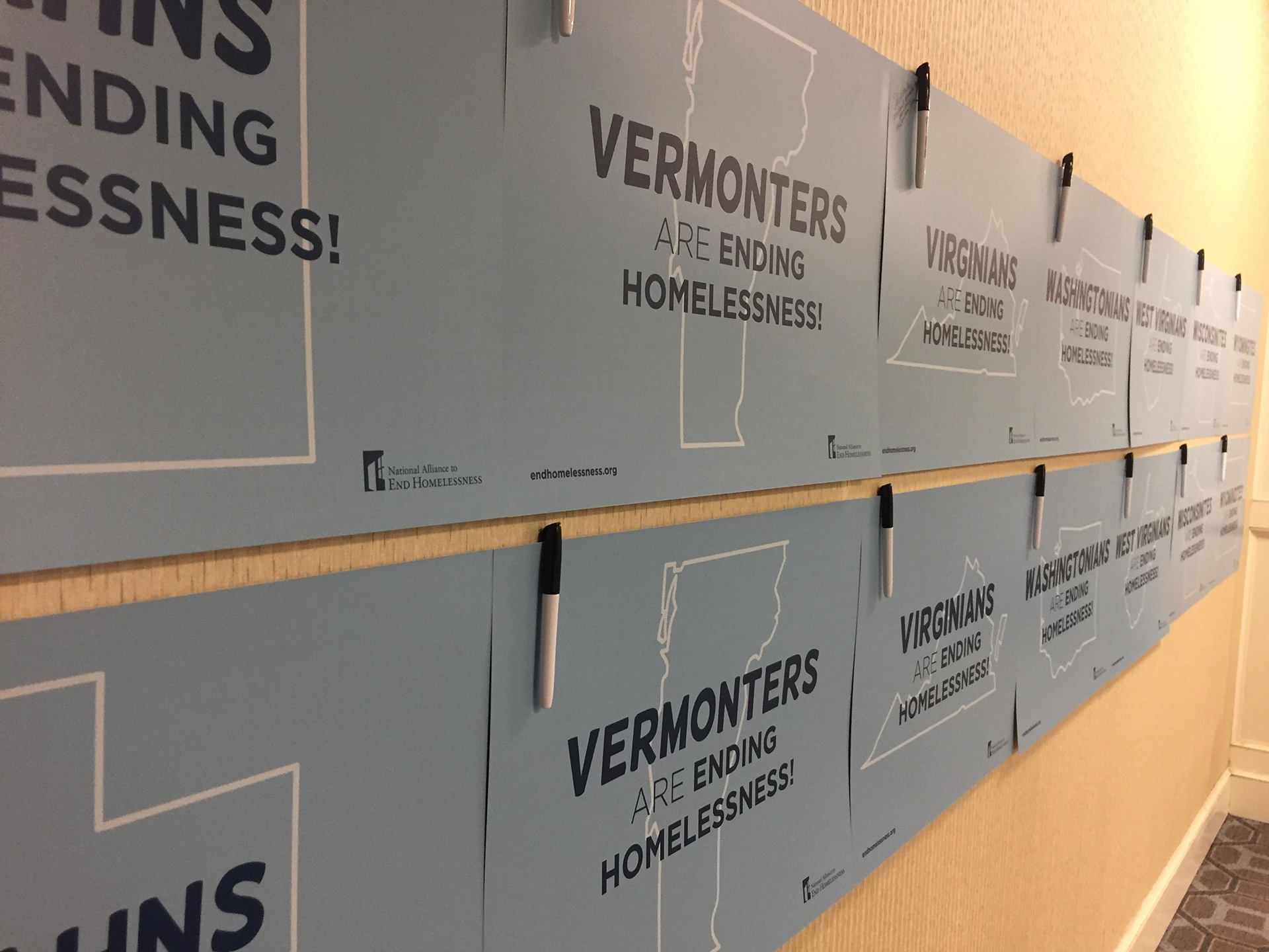 As part of the National Alliance to End Homelessness's Capitol Hill Day, we printed vinyl signs for each state celebrating progress toward ending homelessness. The signs were hung at the Alliance's D.C. conference and signed by thousands of attendees from all over the country. Once signed, the posters were hand delivered to members of Congress from the corresponding states.